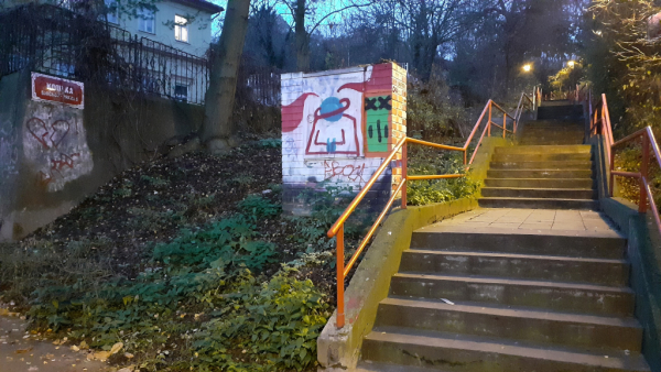 Schody v ulici Koulka vedou dolů na Smíchov.
