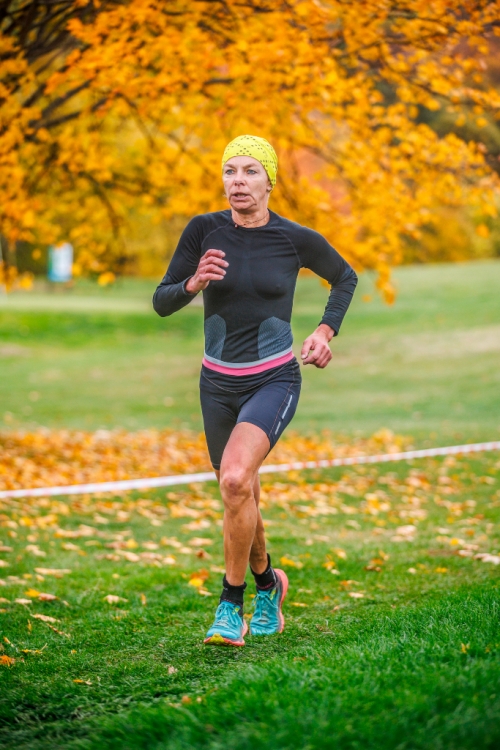 Kurs byl perfektně zavlažený celodenním pátečním deštěm, teplota se držela u patnácti stupňů, podzimní barvy nasvětlovalo slunce. Dospělý okruh zachoval loňskou mapu. Desítka udržela 103 metry převýšení, ale přece jen stoupání cik cak odpalovou loukou k cíli má humánnější podobu.