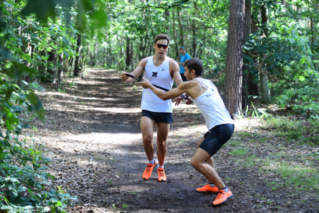 Zátopkova 10. Bratři Svobodovi si předávají štafetový kolík.