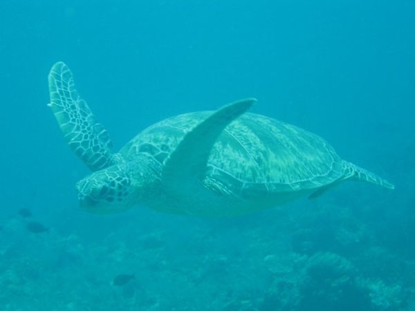* Želva s jedenapůlmetrovým krunýřem se krčila za korály v domnění, že ji není vidět.