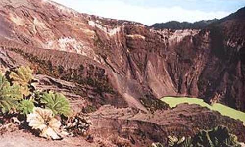Rešpekt u turistov vzbudzovalo neustále podzemné dunenie a mrmlanie sopky, z ktorej sa pod chvíľou skotúľala dymiaca sopečná puma. Keďže priblížiť sa bližšie k úpätiu sopky je zakázané, museli sme sa uspokojiť len s prechádzkou po zvetraných lávových poliach. Tie ma príliš nenadchli, oveľa zaujímavejšie boli náučné chodníky po okolí, ktoré návštevníkom predstavujú predovšetkým zaujímavú flóru. Zaujali nás napríklad dva druhy zemných orchideí a predovšetkým veľké súkvetia helikónií.