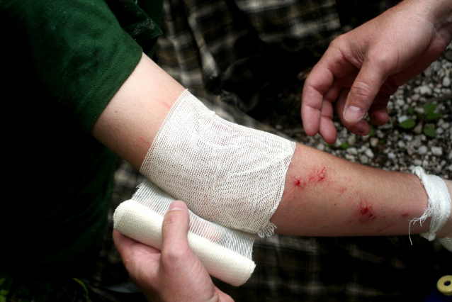 Odřeniny po pádu z kola nebo koloběžky je nutné ošetřit.