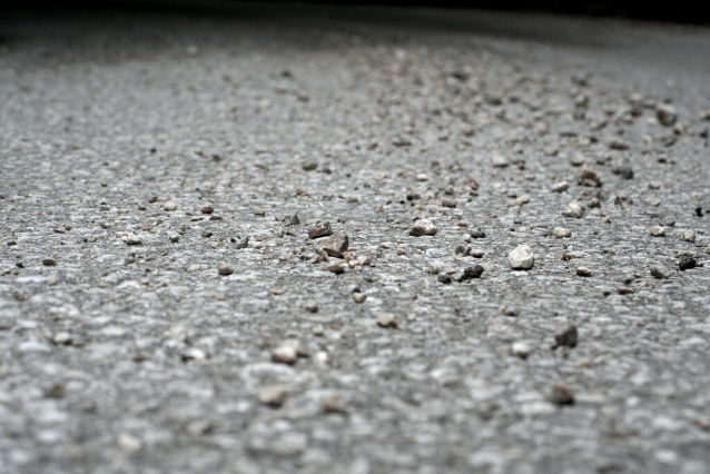 Štěrk na asfaltu - nebezpečí pro nepozorné cyklisty.