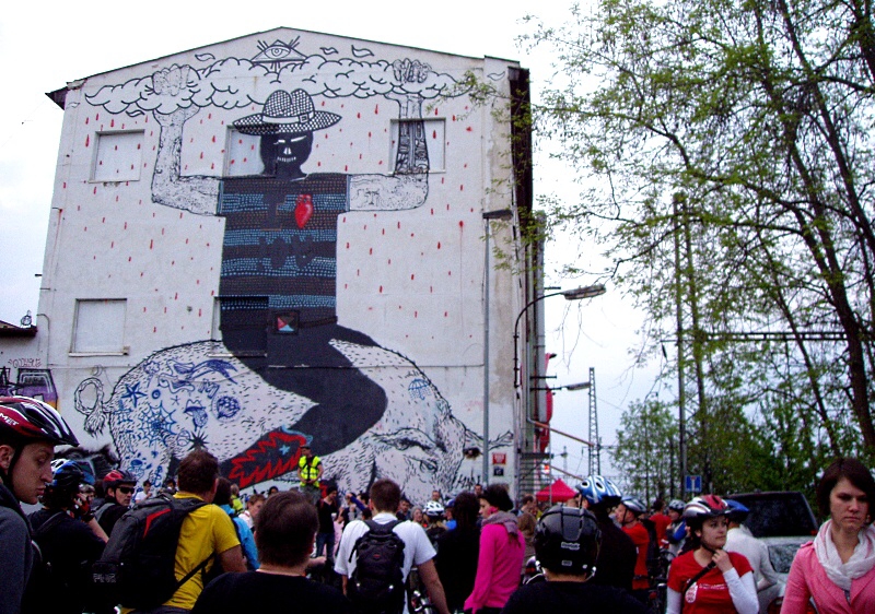 V příjemném počasí projel pestrý peloton centrum Prahy a přes Magistrálu, Pankrác a Barrandovský most dojel do klubu MeetFactory.