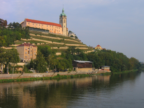 Zdymadlo Hořín, Vraňansko-hořínský plavební kanál. Na obzoru Mělník.