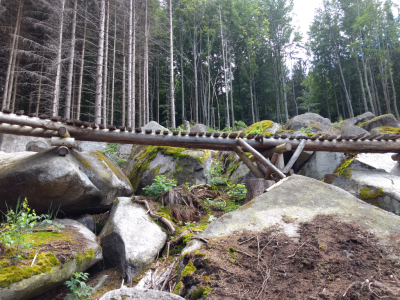 Na začátek se přejede několik kamenů, se kterými by měli průměrní bikeři velké potíže, ale na tomto trailu slouží jen k rozehřátí. Pozornost je nutné zkoncentrovat na dvou vysokých dřevěných lávkách.