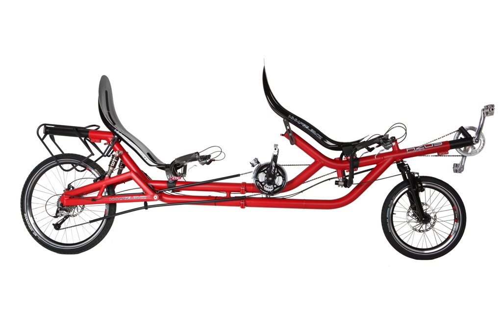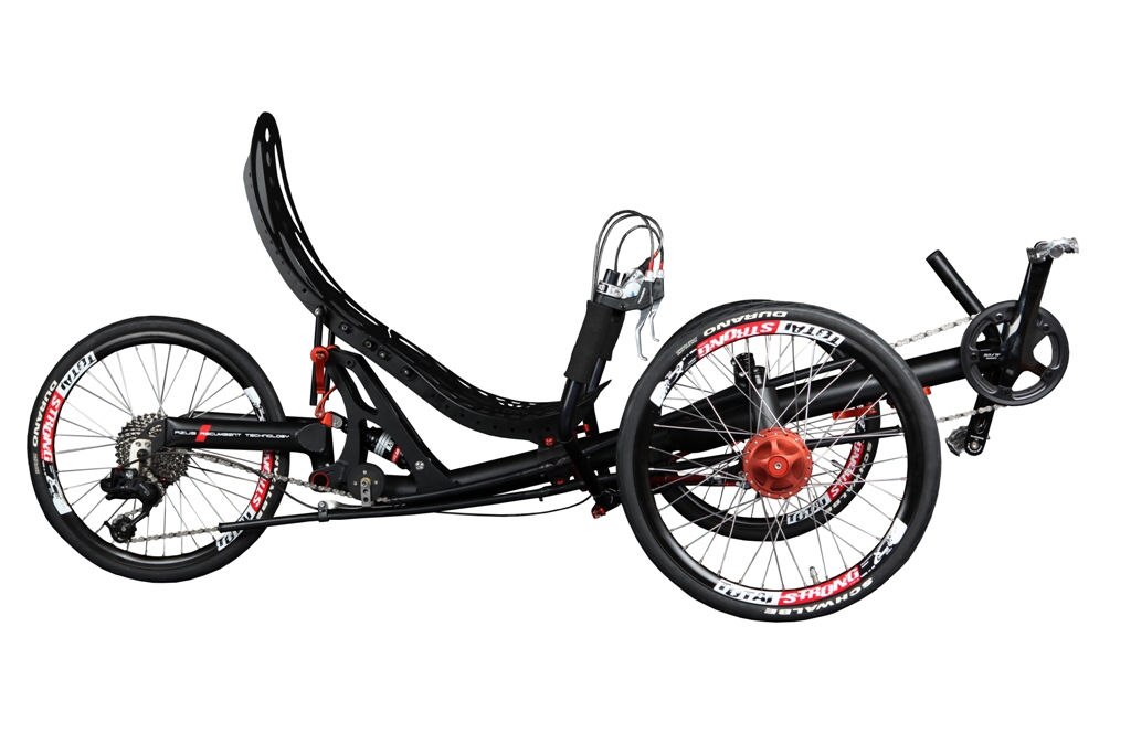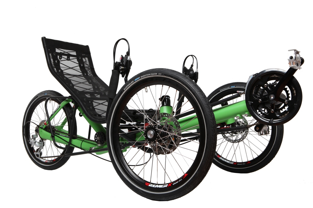 Největší předností ležaté tříkolky je zadní odpružení v kombinaci s velmi krátkou a tuhou zadní vidlicí a také možnost rychle ji složit do kufru, v němž ji lze převážet autobusem nebo letadlem.