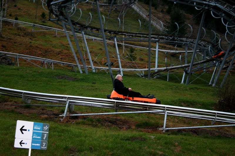 Krkonoše jsou teď před zimou liduprázdné. Turisté nechodí za ošklivého studeného počasí na hory, lyžařům zatím chybí sníh a ve skiareálech není do čeho píchnout. Aspoň že jezdí bobové dráhy. V Peci jsme se tento týden svezli na bobech v Relaxparku.