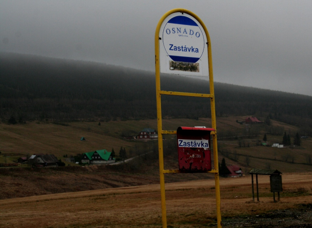 Krkonoše, Pomezní boudy, autobusová zastávka.