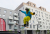 Paragliding ve městě – nafukování padáku i start s padákem.