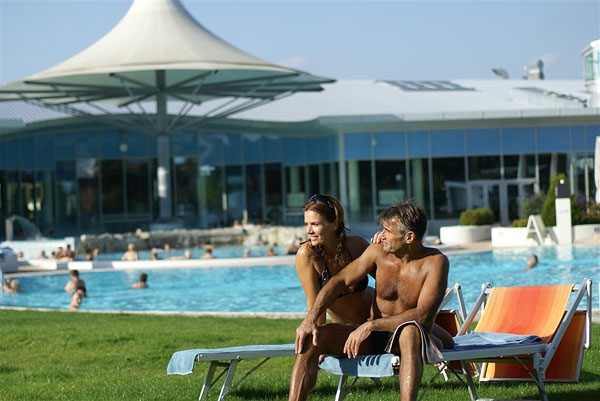 V případě nepříznivého počasí je kromě venkovního vodního světa k dispozici také svět masáží, restaurace a butik.