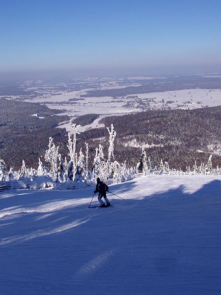 Sjezdař na vrcholu Jedlové