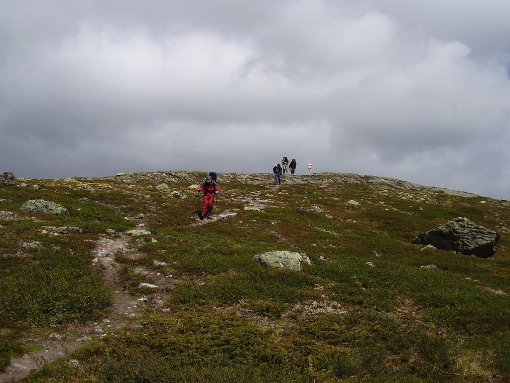 Východní Hardangervidda. Ještě je dobře, jsou tu keříky, i když občas doplněné mělkou bažinou