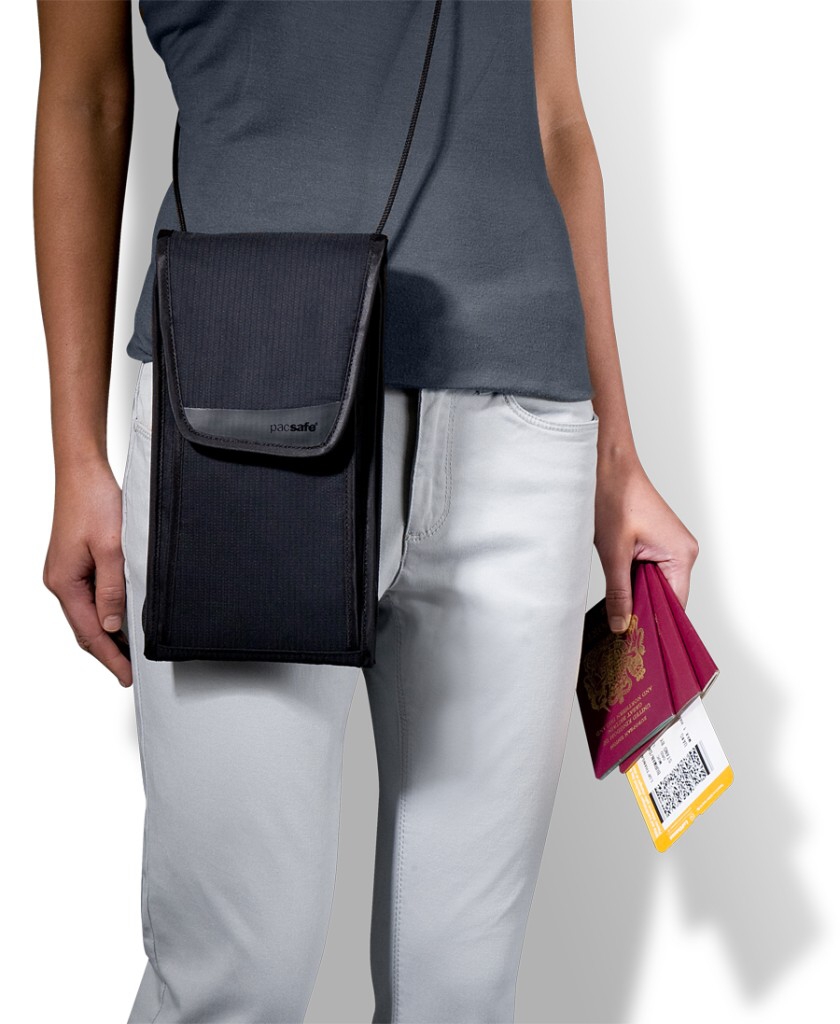 Pacsafe 2012. Příruční zavazadlo má kapsu, která brání průniku signálu RFID.