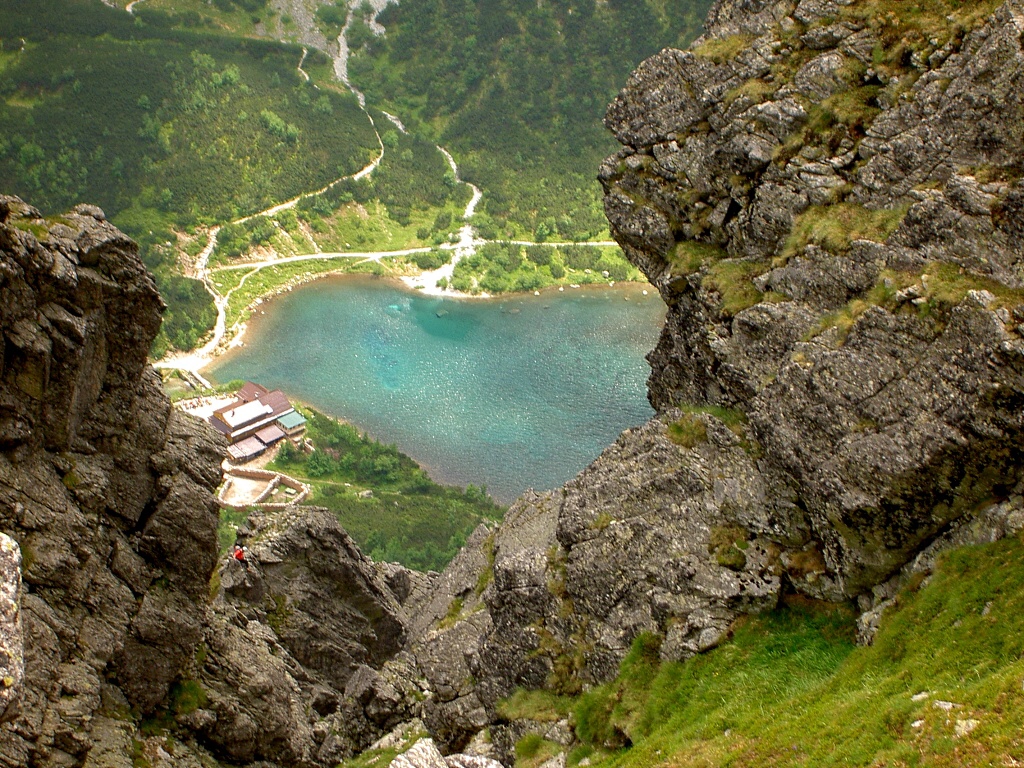 Cez knihu 5 UIAA. Na konci páté délky slaňuje Kuba z hřebínku do sedélka pod labem