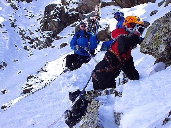 Sjezd do údolí Viso, skalní bariéra pod sedlem Contrabbandieri