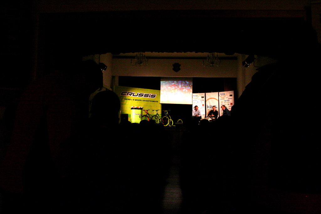 Reprezentant biatlonista Ondřej Moravec, biatlonový reprezentační trenér Ondřej Rybář a komentátor České televize Tomáš Lachman besedovali před publikem na zámku v Lanškrouně díky místnímu kulturnímu centru a firmě Cyklotrenink Františka Trkala.