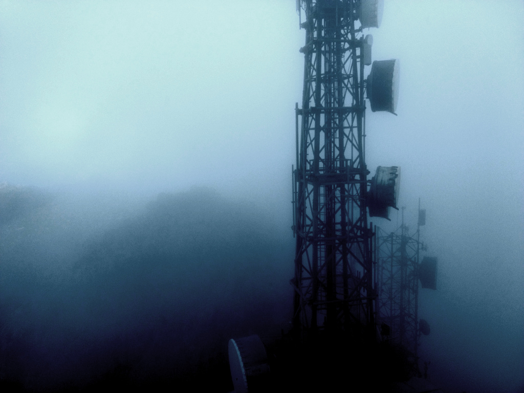 Monte Capanna. Telekomunikační zařízení na vrcholu pracuje pro Itálii a Francii.