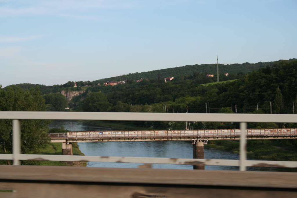 Pod Berounem vede přes Berounku dálniční a železniční most.