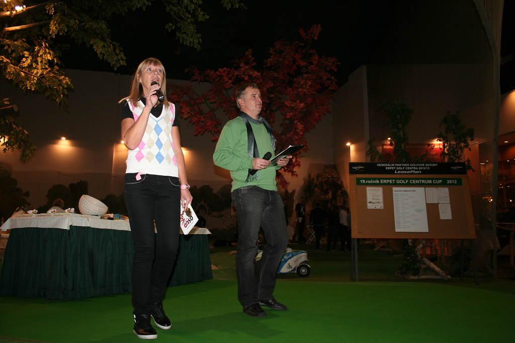 Indoor golf Erpet Praha. Autorka zatím dvanácti průvodců Klíč k českým golfovým hřištím Daniela Gaudlová.