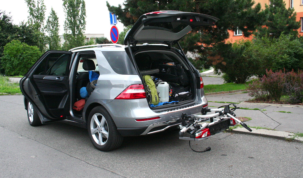 Mercedes-Benz ML 350 BlueTec 4M. Kola, stany, spacáky, oblečení, jídlo, pití, mapy, průvodce, helmy... Máme všechno na cyklistickou dovolenou?