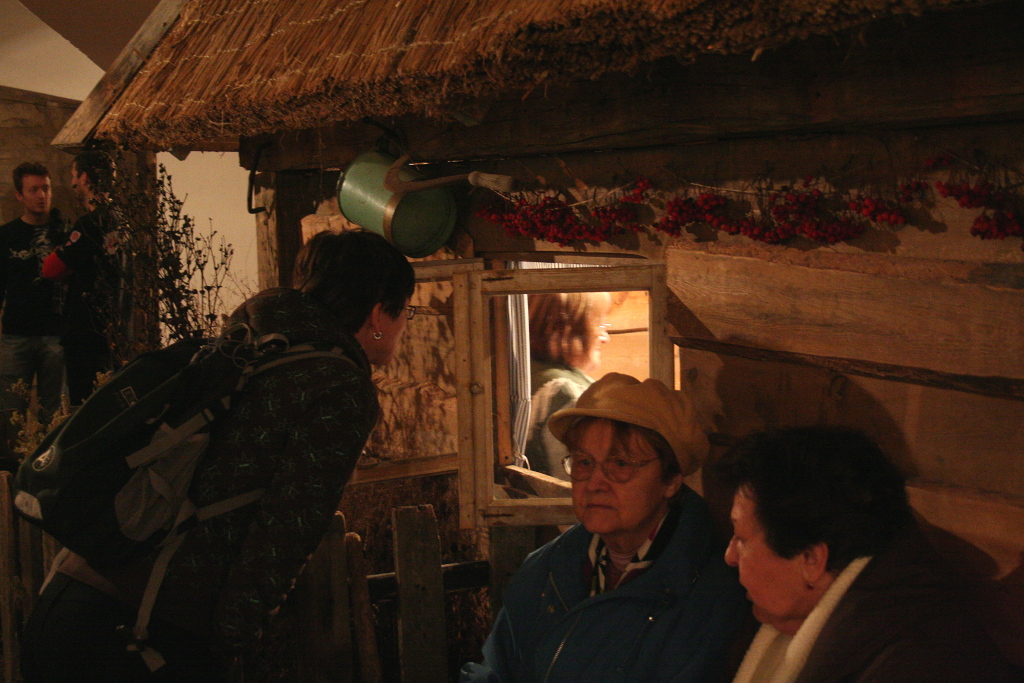 Vánoční výstava v Betlémské kapli. Za okénkem pracují perníkářky, které ovšem neprozrazují svá největší tajemství, jak a čím zdobit perníčky.