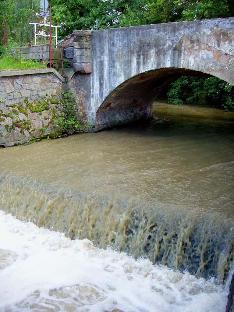 Výrovka. Nebezpečný stupeň pod mostem v Radimi.