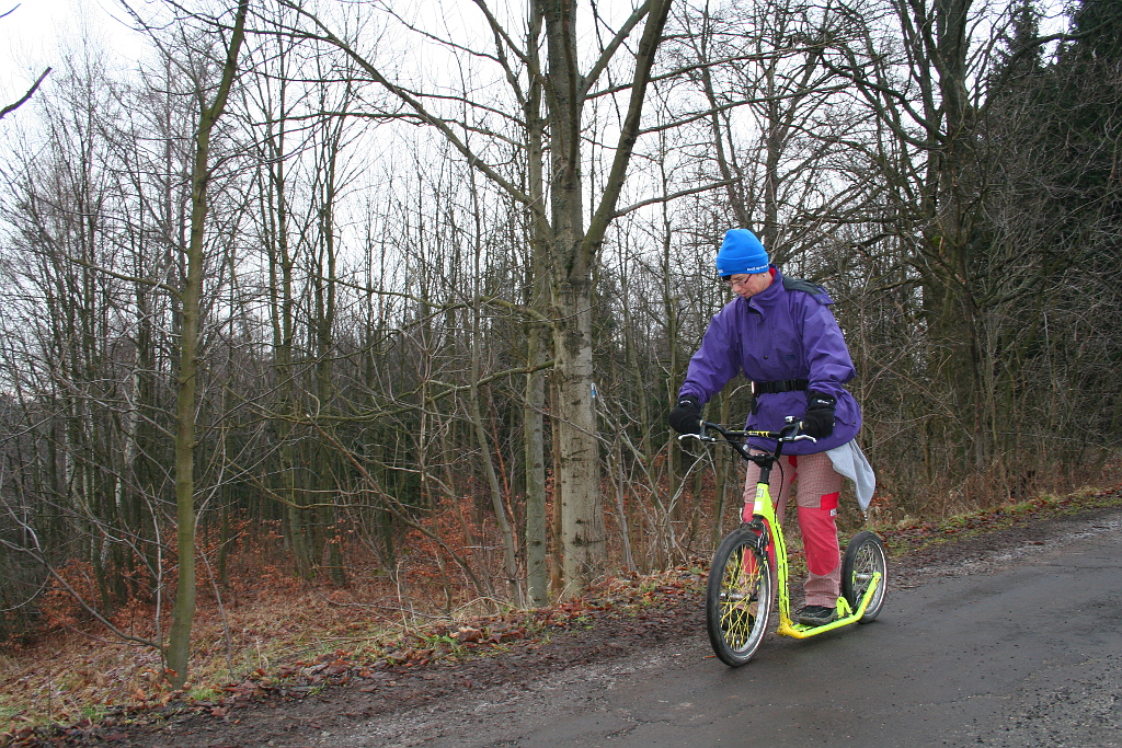 Sjezd na koloběžce z Kopaniny do Frýdštejna.