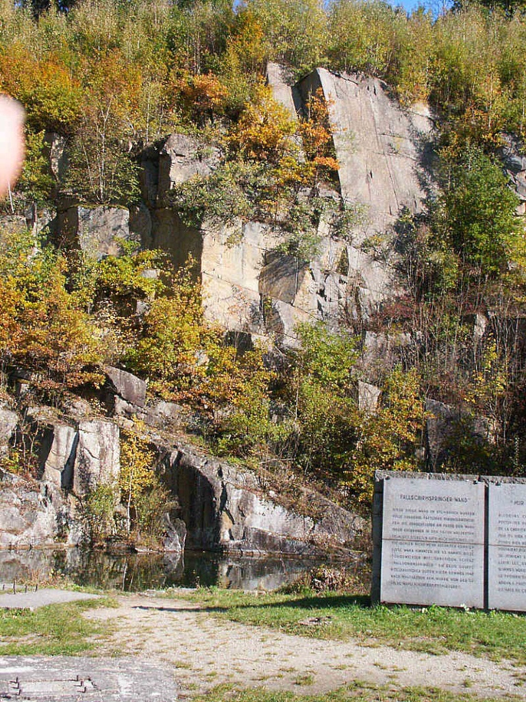 Mauthausen. Fallschirmspringerwand. Tady se shazovali vězni do propasti navzájem podle rozkazu SS-manů.