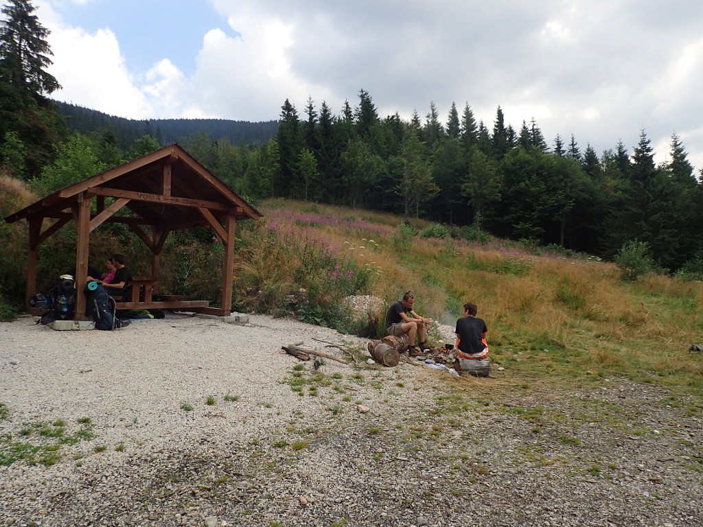 Nízke Tatry, sedlo Priehyba a turistický přístřešek.