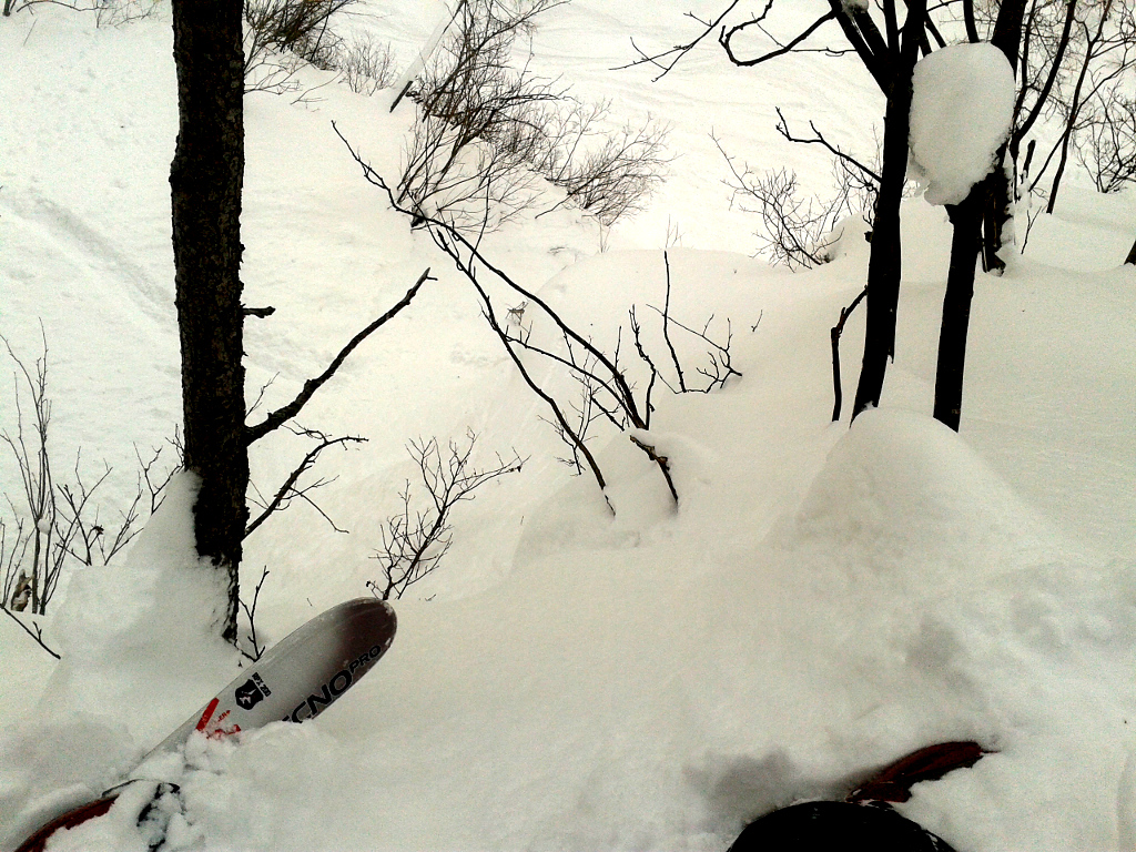 Sella Nevea. Na lyžích v lese pod Golovcem.