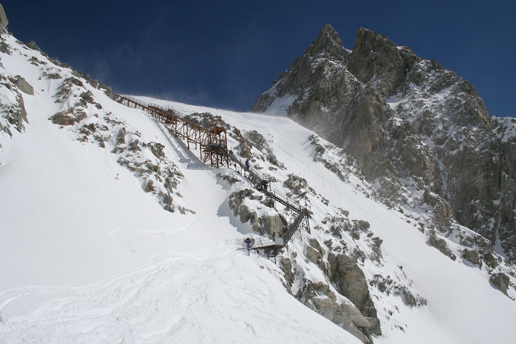Courmayeur, schody na začátku sjezdu ledovcem Toula.