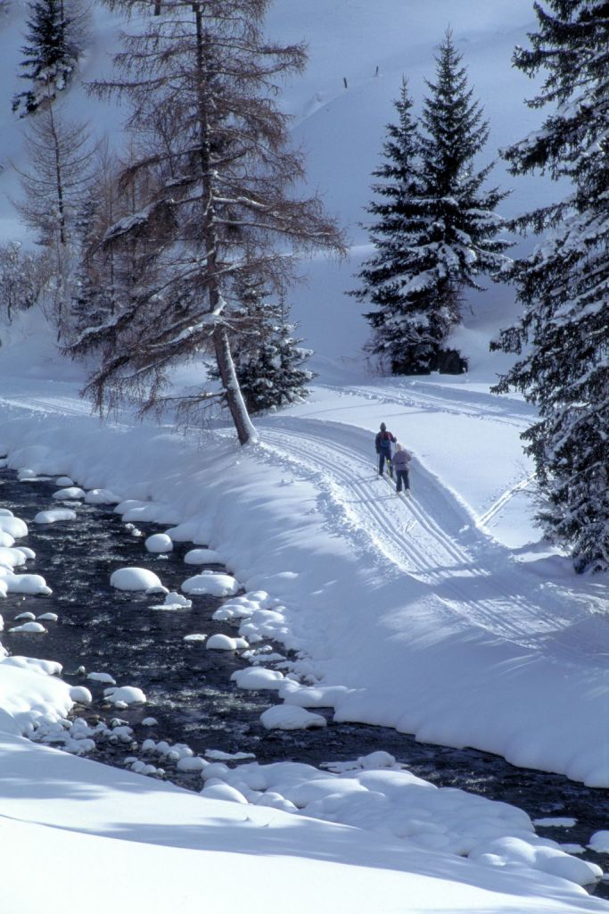 Ischgl. Lesní trasa pro běžecké lyžování.