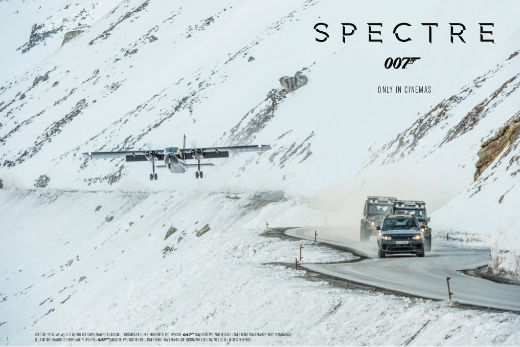 Natáčení filmu James Bond Spectre v Sölden na ledovcové silnici.