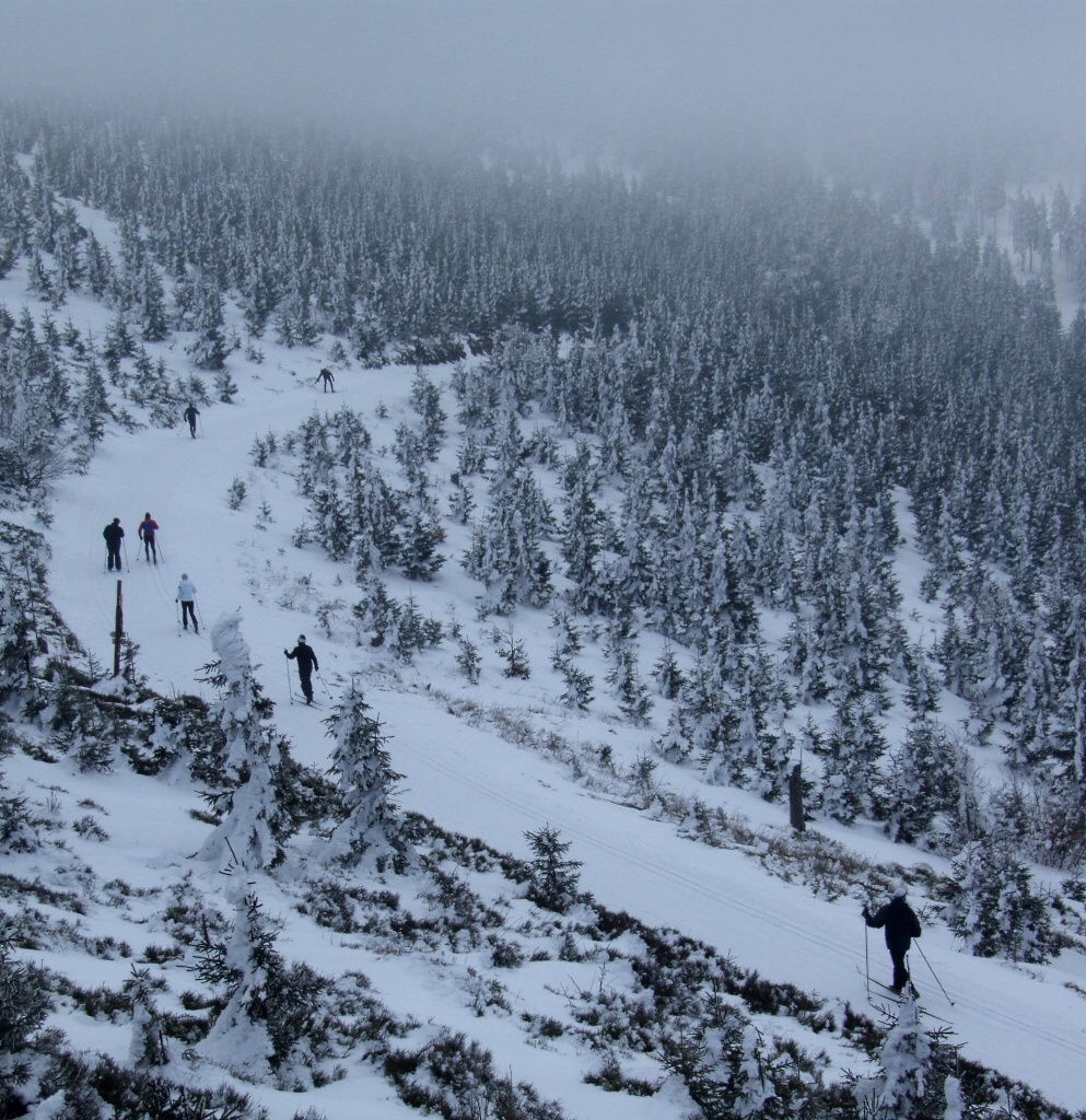 Jeseníky, lyžařská magistrála nad Červenohorským sedlem.