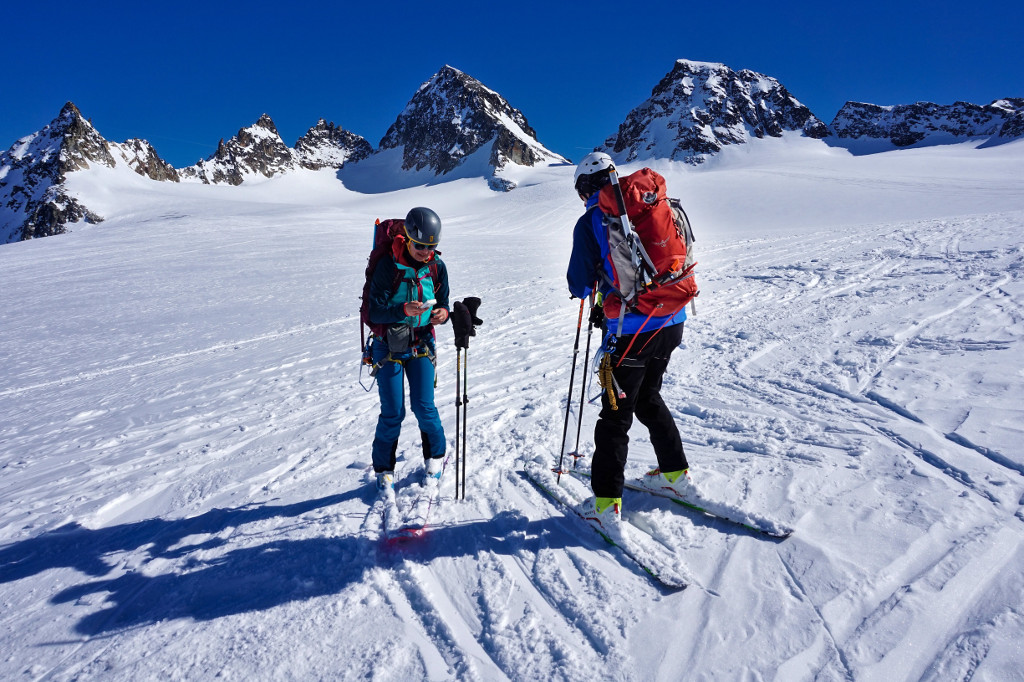 Silvretta. Lyžaři na ledovci pod Piz Buin.