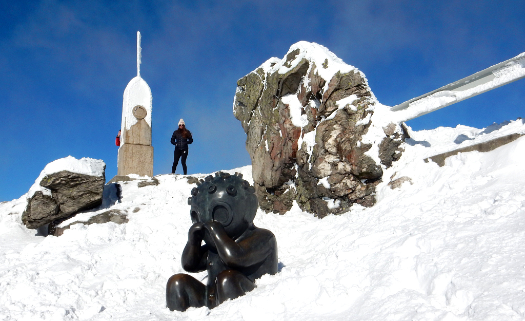 Mimozemšťan / Malý Marťan od Jaroslav Róny sedí na Ještědu.