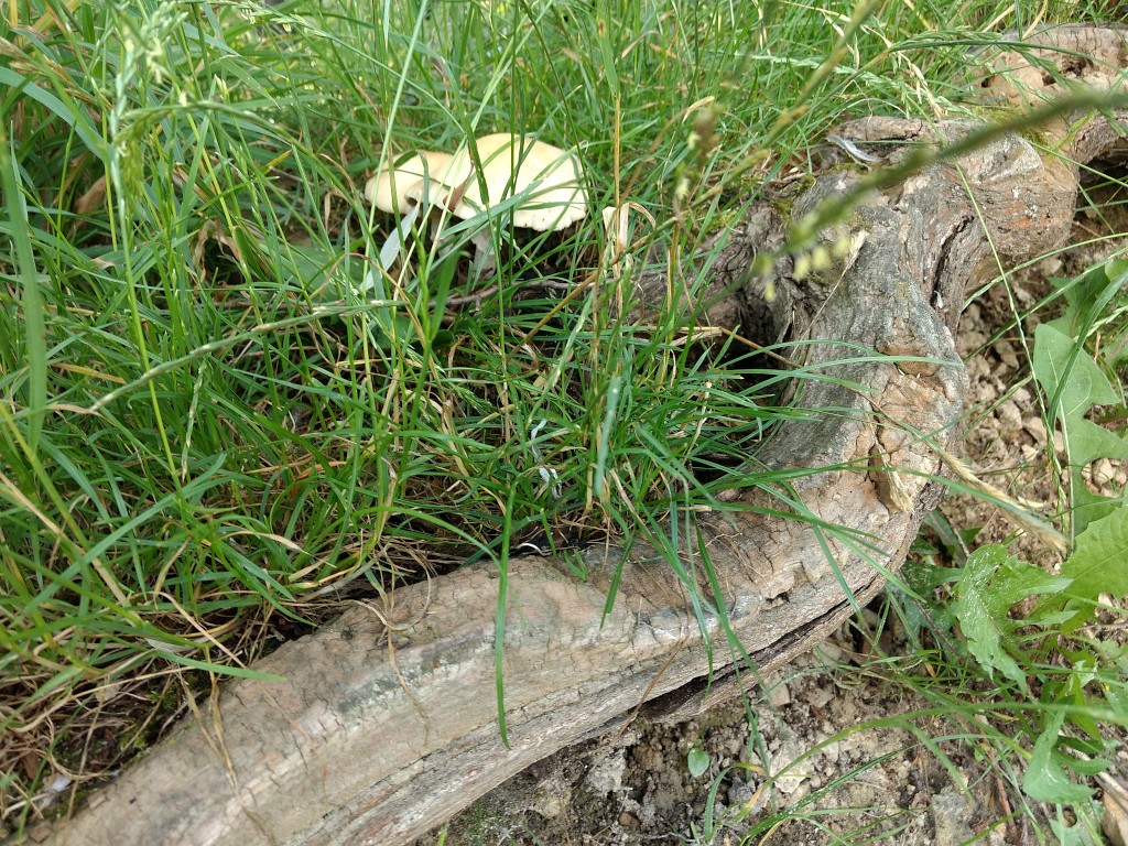 Letní houby v trávě u zatopeného lomu Chrástnice v Polabí.