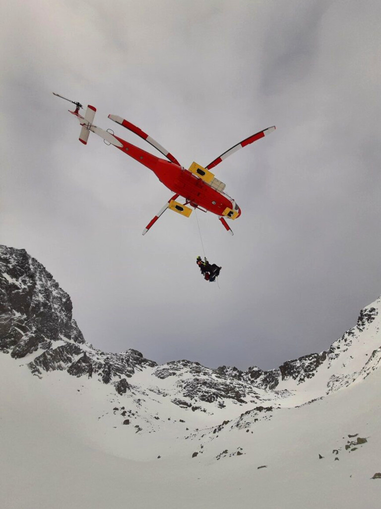 Vrtulník odnáší mrtvé tělo z Batizovské doliny pod Gerlachem.