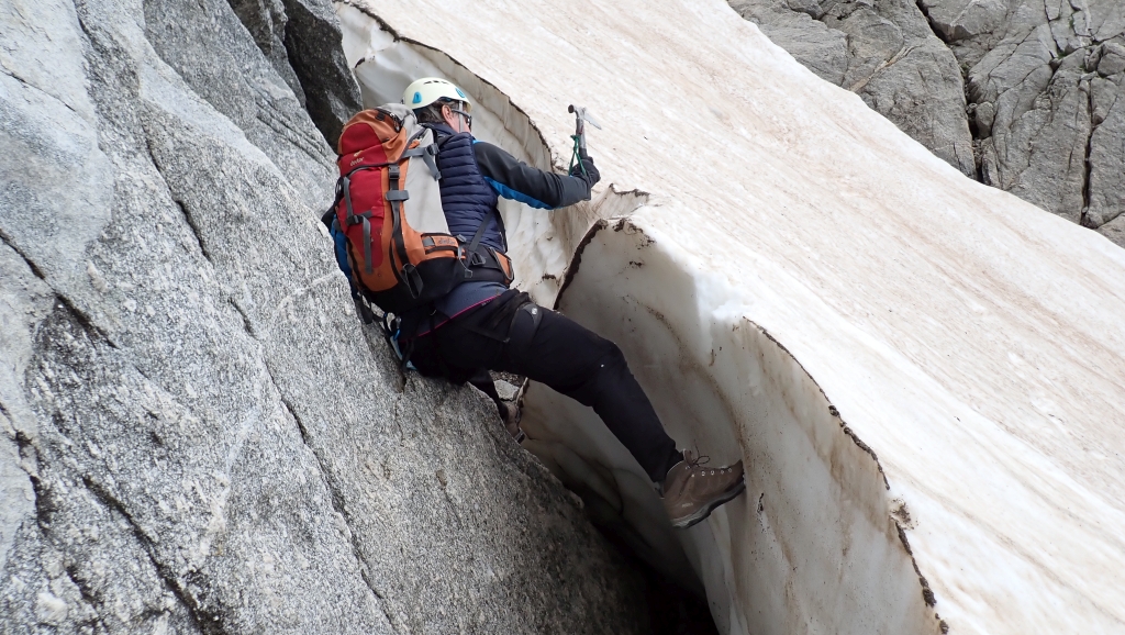 Passo Porcellizo, Kuba zdolává sněhovou příhorní trhlinu.
