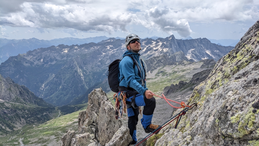 Tomáš štanduje na dlouhém hřebenu Passo Porcellizzo - Punta Torelli