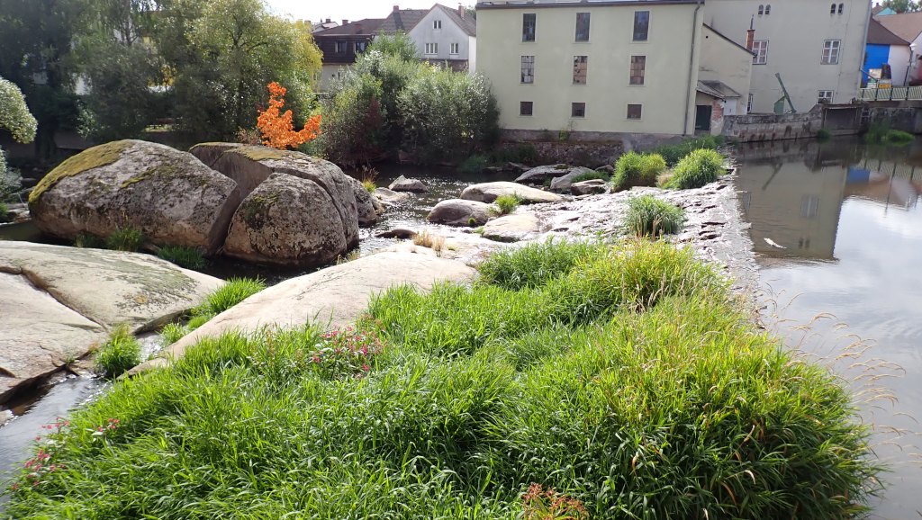 Gmünd, Lužnice, jez pod mostem ve městě.