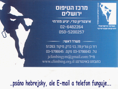 Na stránkách Izraelského horolezeckého klubu, který má kolem 1200 členů (z nichž jsou ale skutečně lezecky aktivních jen asi čtyři stovky) se najdou popisy skalních oblastí a průvodce. Je v tom ale jeden háček - většinou jsou psány hebrejsky. Našincům tedy nezbývá nic jiného než zavolat do klubu. S někým se ať už anglicky, francouzsky, německy nebo rusky domluví. Jak už to mezi lezci bývá, rádi každému ukážou skály ve své zemi, na kterou jsou velice hrdí.