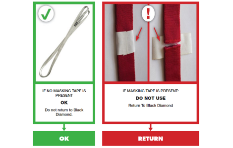 Black Diamond stahuje z trhu nylonové smyčky o šířce 18 mm a délce 60 cm (380060) nebo 120 cm (380061). Důvodem je, že se jedná o smyčky malou nosností a omylem by mohlo dojít k jejich využití za standardních lezeckých podmínek a jejich následnému selhání.