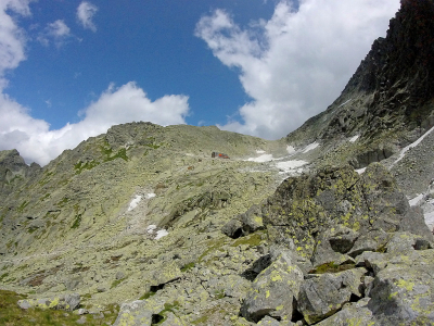 Z chaty Pod Rysmi přejdeme po suťovisku pod nástup (15 minut),