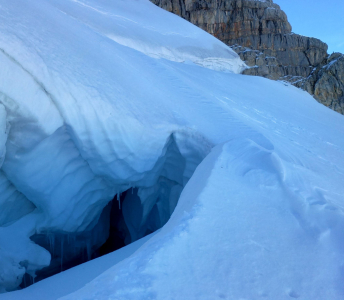 V tu dobu byl celý Dachstein pokrytý ledem a sněhem, ledovec pod ním směrem k Wartehütte zůstal až do pozdního odpoledne zmrzlý. Sestupovat a vystupovat se dalo pouze po ferátě od chaty, nebo ledovým žlabem k Meklenburské polici. Samotný Randkluftsteig (bývalá normálka) je už nějakou dobu nepřístupný kvůli odtálé příhorní trhlině. Bez maček a cepínů se nahoru a hlavně dolů nelze dostat ani z jedné strany Dachsteinu.