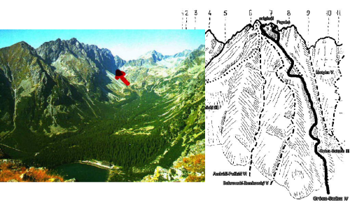CLIMBING GUIDE Hanku bolí koleno, mě chytla lenora, a tak se domlouváme na nějaké lehké krátké túře. Od chaty u Popradského plesa proto vyrážíme až mezi posledními. Traverzujeme nekonečnou sutí pod Zadnou Baštu, kde jsem si vyhlédl Grószovu cestu z roku 1920.