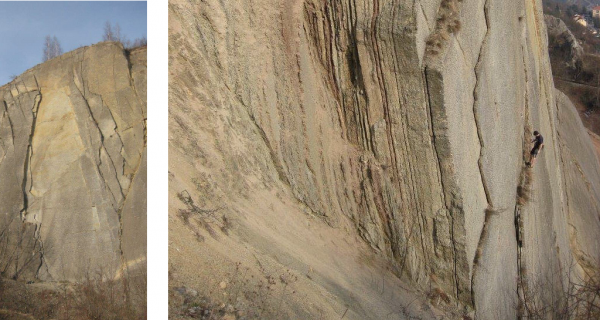 Hlubočepské plotny 2013. Čerstvý výlom v levé plotně.