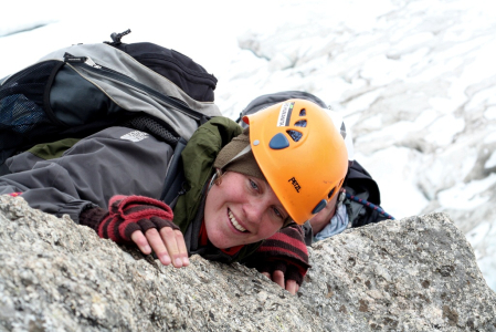 Po půlhodině konečně odkládáme mačky a cepíny a nazouváme lezečky. Za pár chvil dolézáme pomalejší Pařížany. První délku to za nimi poslušně vydržíme, ale pak je předběhneme.