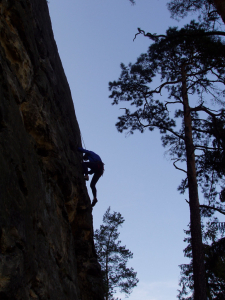 Délka výstupu je čtyřicet metrů. Odspoda až nahoru vede spárou. Dole do ní strčíte ruku, nahoře se do ní vklíníte celí.